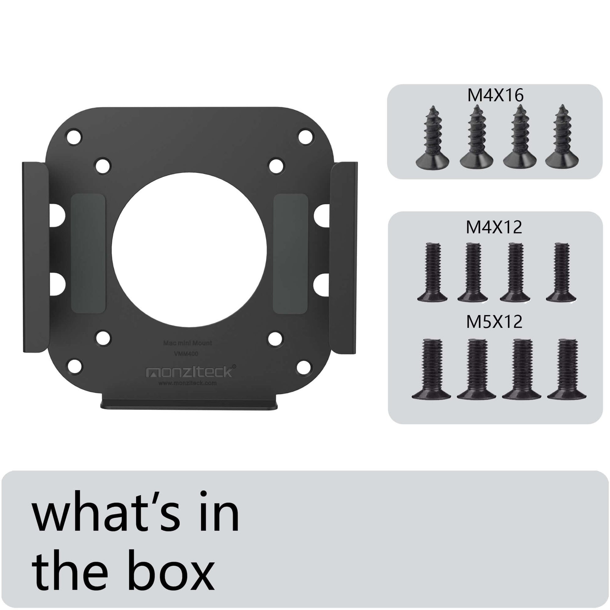 Monzlteck Mac Mini M4/M4 Pro & VESA Mount Dual-Purpose Under Desk/Wall Mount Bracket – Heavy-Duty Metal Bracket with Anti-Scratch Padding & Full Hardware Kit