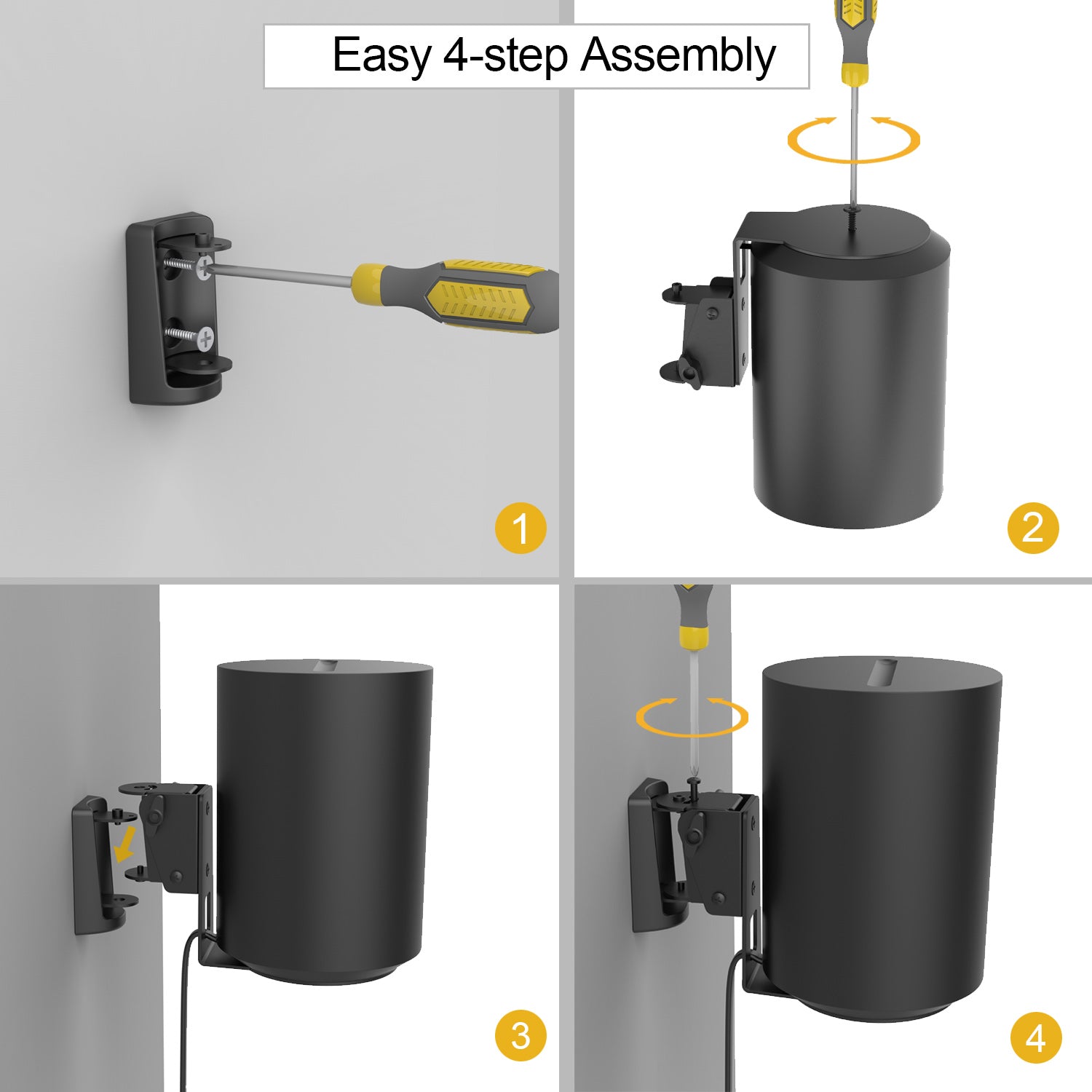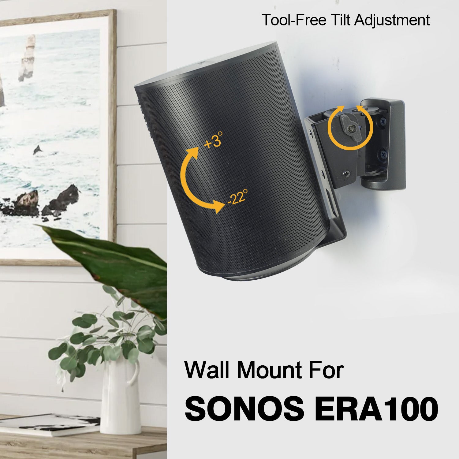 Sonos Era 100 Wall Mount Bracket – All-Metal Heavy Duty Steel, Adjustable Angle (-22° to 3° Tilt, ±45° Swivel), Tool-Free Tilt Adjustment, Includes Mounting Screws & Anchors, Sturdy Anti-Vibration Speaker Wall Bracket