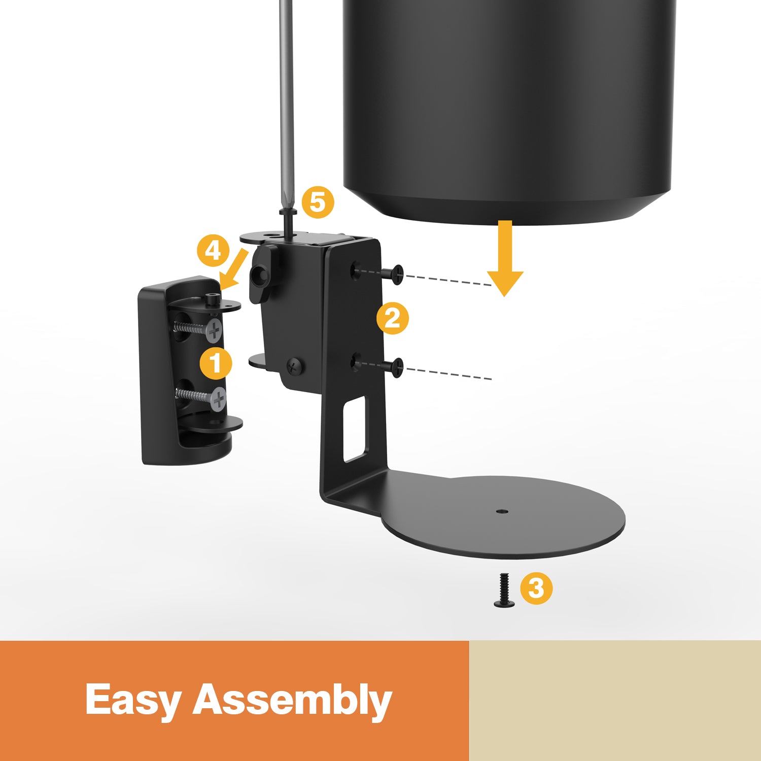 The main body and rotating joints are made of heavy-duty cold-rolled steel with a rust-resistant finish. Each bracket supports up to 10kg+ static load, far exceeding the weight of Sonos Era 100, ensuring zero deformation or bending.